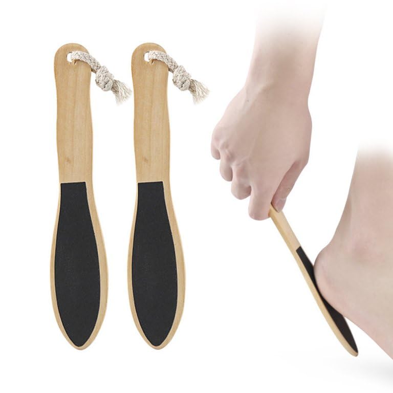 ZOZY - مبرد قدم خشبي مزدوج الجوانب ومتين للاستخدام الرطب والجاف بمقبض من الخشب الطبيعي لإزالة الجلد الميت والخشن للحصول على قدمين ناعمتين في المنزل من زوزي