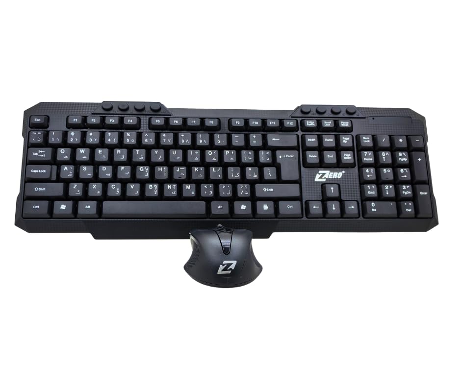 Generic - مجموعة كيبورد وماوس لاسلكية ZR-5608، كيبورد عمل لاسلكية 2.4 جيجاهرتز مع لوحة مفاتيح رقمية وماوس ضوئي ومفاتيح عربية وانجليزية - اسود