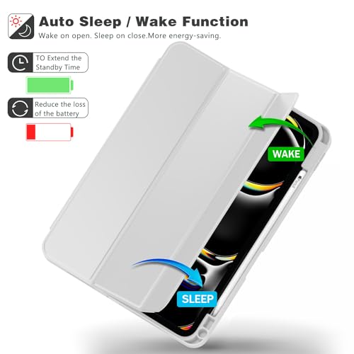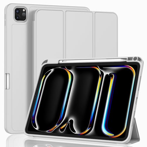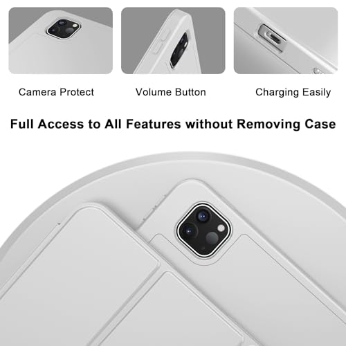 ZryXal - ZryXal 2024 iPad Pro 11 Inch Case (5th Generation) with Pencil Holder, Smart iPad Case [Support Touch ID and Auto Wake/Sleep] with Auto 2nd Gen Pencil Charging (Light Gray)