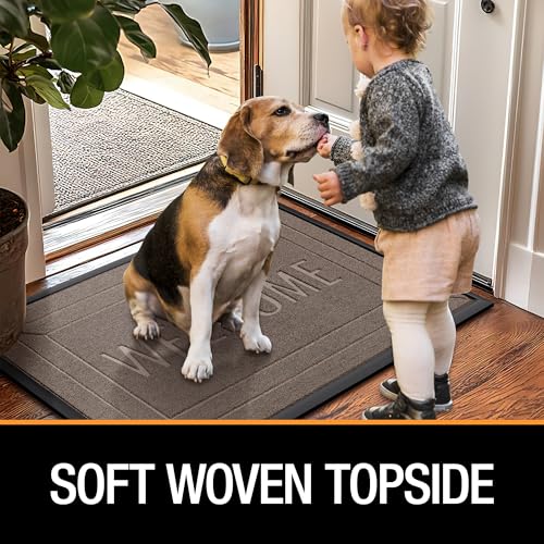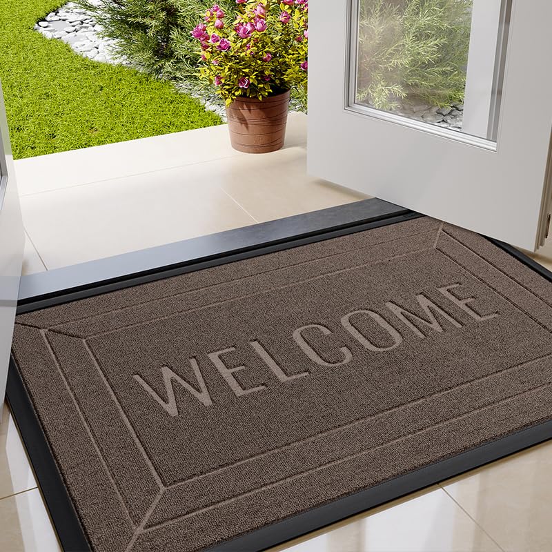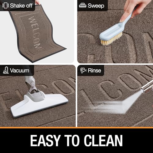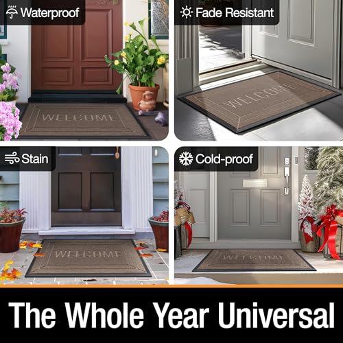 ZTIONHD - Front Door Mat Outside/Indoor Entrance - 17x29.5 inch Outdoor Patio Welcome Mats for Front Door - Fade Resistant Rubber Doormat Weather Durable, Beige Brown
