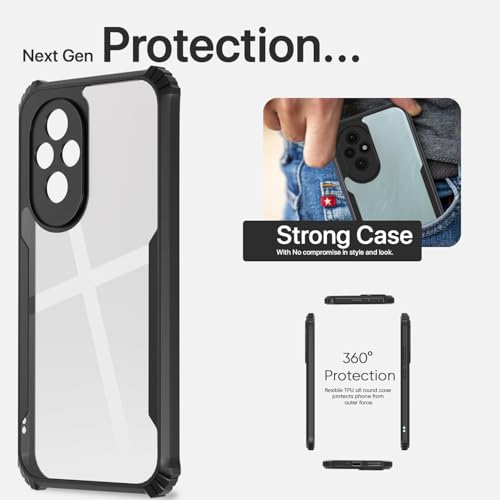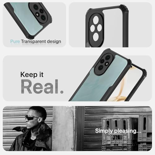 Zubitech - جراب حماية خلفي شفاف صلب من البولي يوريثين المقاوم للحرارة والبولي كربونات لموبايل هونر 200 شبكة الجيل الخامس 5G 6.7 بوصة وواقي عدسة كاميرا مقاوم للصدمات 360° من زوبيتيك