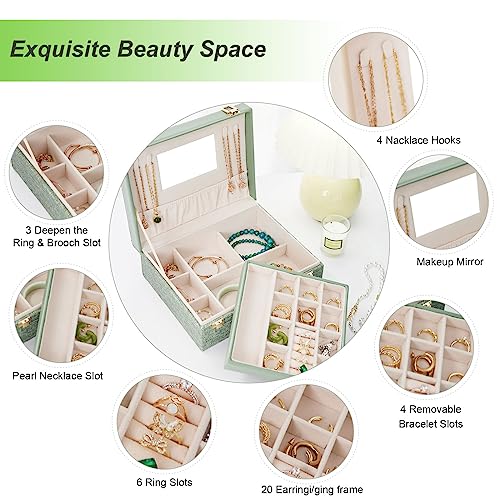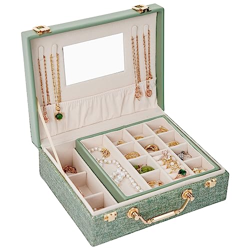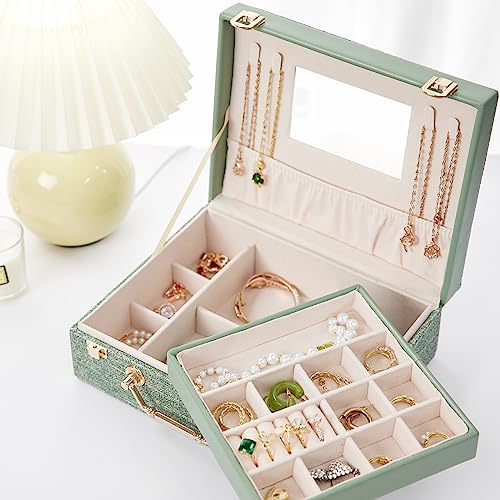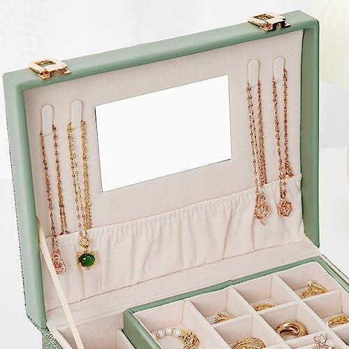 Zumier - Portable Jewelry Box Organizer for Women Girls with PU Leather, Earring Organizer Box with Makeup Mirror for Birthday and Theme Party Gift (Green)