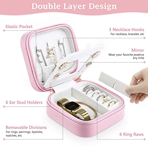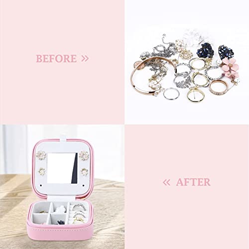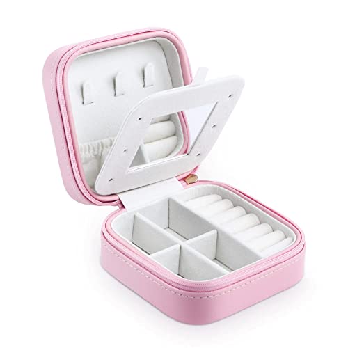 Spaceshoop - ZUOMIDIE Small Jewelry Box Organizer, Faux Leather Portable Mini Travel Jewelry Trays Display Storage Case with Mirror for Necklaces Bracelets Earrings Rings