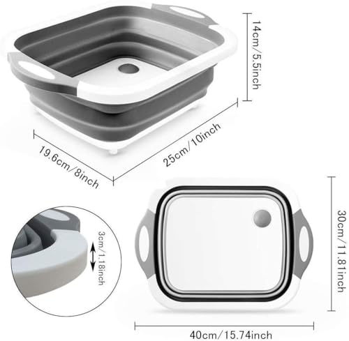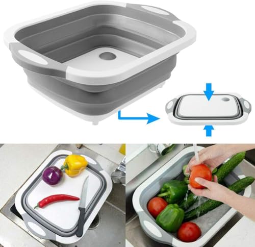 ZURU BUNCH - 3 in 1 Multifunctional Kitchen Foldable Cutting |Chopping Board |Washing Bowl |Collapsible Dish Tub |Vegetable, Fruit Washing |Draining Basket with Plug |Folding Washbasin (Color May Vary)