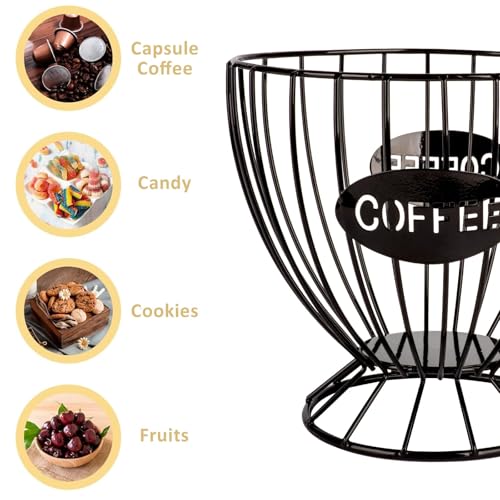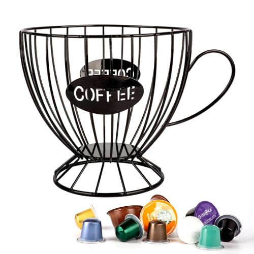 ZYNOXITY - Metal Coffee Pod Organizer Holder, Capsule Storage Basket, Espresso Cup Shape, Durable Iron Art for Kitchen Countertop Decor, Home Office, Black, 20x15x14cm