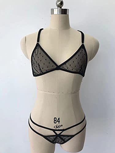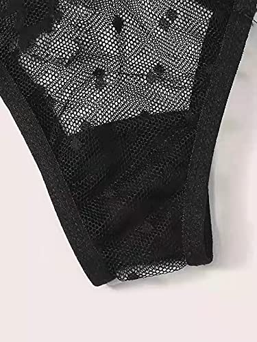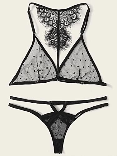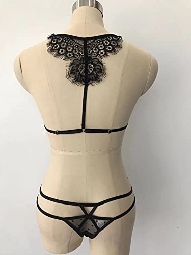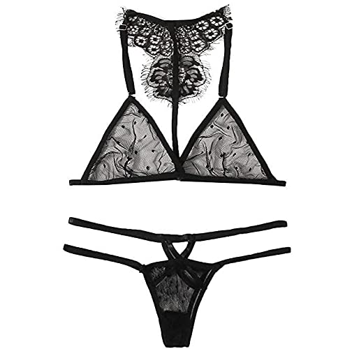 ZYW - طقم لانجيري جذاب مكون من قطعتين حمالة صدر رافعة بدانتيل وبانتي، ملابس بيبي دول تيدي دانتيل للنساء، 1497, أسود, L