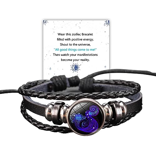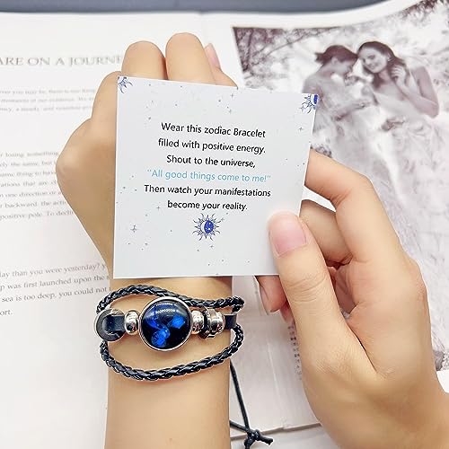 ZZ ZINFANDEL - زد زد زينفانديل سوار سبيريت بعلامات زودياك، سوار متعدد الطبقات قابل للتعديل مكون من 12 كوكبة زودياك، سوار منسوج يدويا للنساء والفتيات يتوهج في الظلام، هدايا مجوهرات زودياك للرجال