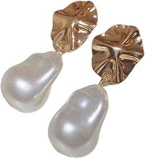 SHOWDAY Baroque Keshi Pearls Stud Earring Natural Freshwater Pearls Dangle Earrings Gold Pearl Drop Earrings Jewelry S925 with 14K Gold Plated Modern Eardrop for Women