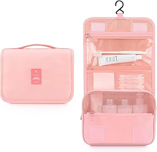House of Quirk Hanging Travel Toiletry Bag Cosmetic Bag Portable Makeup Pouch Hanging Makeup Organizer Case for Women and Girls - Pink
