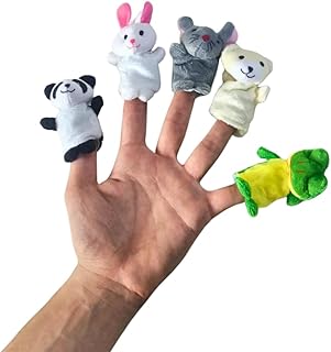 مجموعة من 5 دمى أصابع من القطيفة الناعمة، دمى يد حيوانات كرتونية صغيرة لسرد القصص والعروض التعليمية والدمى المدرسية والمسرح (فأر، باندا، ثعلب، ضفدع، دب)