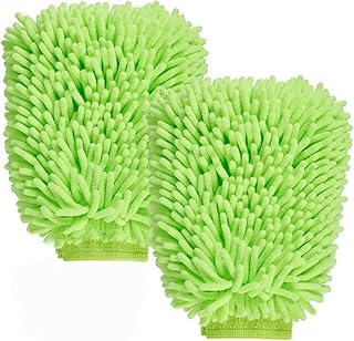 SABSHACH 2x Microfibre Mitt - Orange/Green Ultra-Soft Car Wash Mitt for Washing Vehicles, Car Polishing, Windows Cleaning etc - Scratch Free Microfiber Mitt Car Wash Gloves