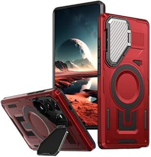 GOLDEN MASK Compatible With Samsung Galaxy S25 Ultra Case with Camera Protection, with Mag-safe Case Magnetic with Stand (Red)