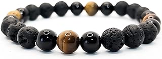 Men's Women's Elastic Bracelet with Real Natural Precious Stones 8 mm Reiki Original Birthday Gift Idea Energy Diffuser Healing Balance (Lava Stone – Onyx – Tiger Eye)