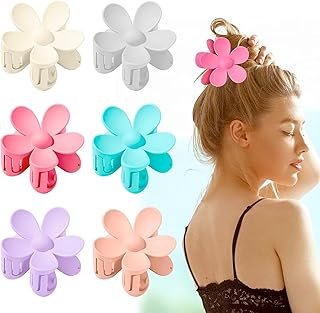Impoditiongs Pack of 6 Matte Flower Hair Clips, Flower Shape Non-Slip Hair Clips, Plastic, Women Girls Hair Clips, Non-Slip Hair Claw, Petal, Large Claw Clips for Women, Thick/Thin Hair, 6 Colours