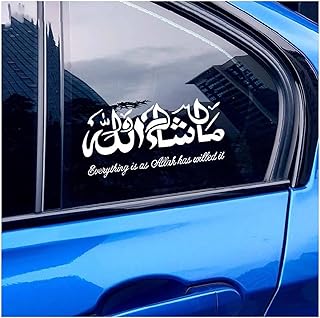 Islamic Quran Ayah and Duaaa Car Sticker - Durable Vinyl, Easy to Apply and Remove Car Sticker, Badges, for Car Glass and Room Doors and Wall White (Mashallah)