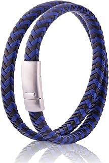 ROVAO Men's Jewelry Genuine Leather Braid Bracelet and Beads, Stainless Steel Magnetic Clasp