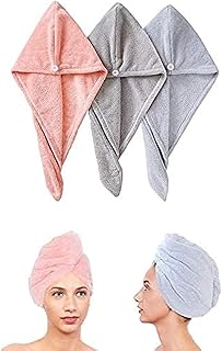 Generic UNESHOP Hair Wrap Towel 3 Pcs Microfiber Drying Headwear Quick Drying Twist Cap Thick Shower Cap Pink, Red
