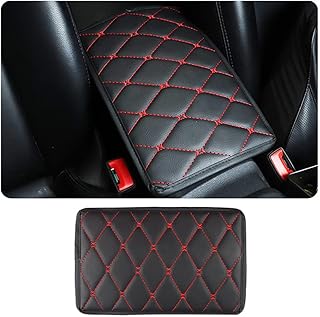 Car Center Console Cover,Soft Leather Car Armrest Cover for Car Decorations and Protections,Universal Anti-Scratch Car Interior Accessories Armrest Cushion for Car Truck SUV (Black+Red Double Line)