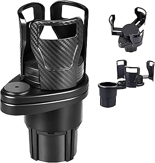 حامل أكواب للسيارة وللمشروبات بتصميم مزدوج متعدد الوظائف 2 في 1 قابل للدوران والتوسيع مناسب لمعظم السيارات، مثالي للزجاجات وأكواب القهوة والوجبات الخفيفة أثناء التنقل مع تثبيت آمن