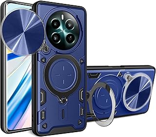 GRABIST Case Compatible with Realme 12 Plus 5G / Realme 12 4G, Premium Protection Back Case with Camera Slide Cover, Ring Stand, Shockproof cover for realme 12 plus 5g (Realme 12+ 5G) (Blue)