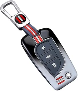 For Toyota Key Fob Cover Zinc Alloy with Silicone Lining - Premium Sport Design Black and Silver with Red Stripes