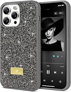 Dl3 Mobilak Case For iPhone 15 Pro Max 6.7-inch Case Glitter, Sparkle Diamond Crystal Bling Case with Bling, Ultra Thin Lightweight Full Body Shockproof Anti-Scratch Protective Cover (Gray)