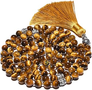 Cat Eye Jewels Mens Chakra Necklace 8mm Mala Beads Necklace 108 Tiger Eye Prayer Beads Long Beaded Tassel Pendant Bracelet Necklaces for Men Women 012