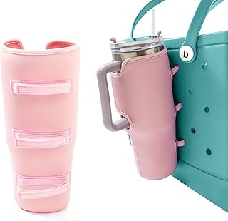 NKD Bogg Bag Cup Holder for Stanley, Drink Cup Holder for Bogg Bag 40 Oz Water Bottle Holder Attachment Automotive Cup Holders Compatible with All Bogg Bag/Simply Southern Beach Tote Bag(Pink)