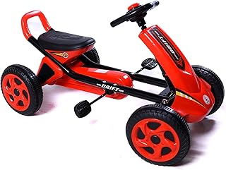 L'AMOUR Kids Pedal Go-Kart (E01)/1500 – Durable Metal Frame, Adjustable Racing Seat, Air-Filled Front Tyre, and LED Light-Up Wheels – Lightweight Pedal Ride-On Toy for Outdoor Fun (Red)