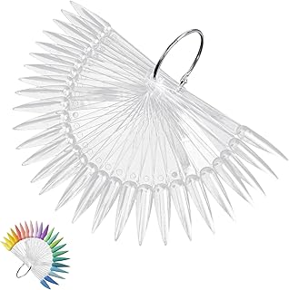 Nail Colour Display Tips Clear 50 Pcs, Nail Swatches Sticks Stiletto Nails Art Tips Practice Sticks | Practice Sticks with Metal Ring | Fan-shaped Nail Samples Sticks for Nails Art Design, Practice