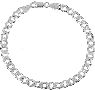 KEZEF Men's Sterling Silver Curb Chain 5.5mm Cuban Link Bracelet Made in Italy 5.5mm 9 inch