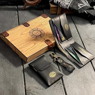 Rusty Leather Men's Nobak Elegant Accessories Set, Handmade Genuine Leather Wallet with 12 Card Slots, Leather Card Holder, Modern Leather Keychain, Multipurpose Wooden Storage Box - Black