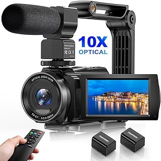 5K Video Camera Camcorder, 48MP Vlogging Camera for YouTube 3X Optical Digital Zoom Recorder Cameras for Photography Vlog Camera with Microphone, Stabilizer, Remote Control, 2 Batteries (Black)