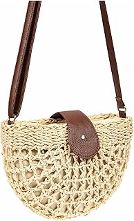 Retro circle summer bag with hand woven rattan and leather strap, perfect for summer beach style