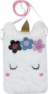 Kids Girls Colorful Plush Unicorn Cell Phone Bag Pouch Mini Crossbody Purse Handbag Wallet