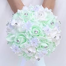 QAZXS Foam Bouquet for Bridesmaid Wedding Bouquets Diamond Ribbon PE Bridal Bouquet with Artificial Flowers Mariage