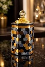 Decorative incense burner with golden and black and gray Hexagonal pattern, golden cover with crystal, luxury geometric design