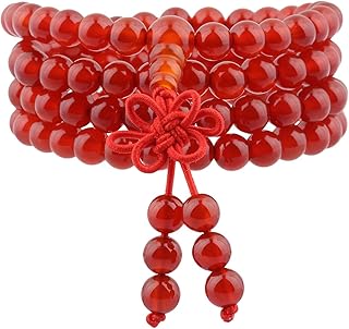 KYEYGWO 108 Prayer Mala Beads Wrap Wrist Bracelet for Women & Men, Tibetan Buddhist Meditation Stone Necklace for Unisex Elastic, Stone, Red Agate,