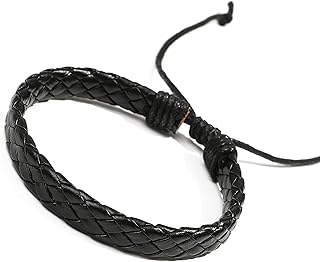 Moneekar Jewels Braided Leather Bracelets for Mens Bracelets Fashion Stainless Steel Magnetic Clasp, Leather