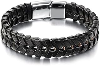 DAIDAISL Men's Punk Style Braided Leather Bracelet Magnetic Clasp Stainless Steel Bracelet Black/Brown Color 22.5/20.5cm