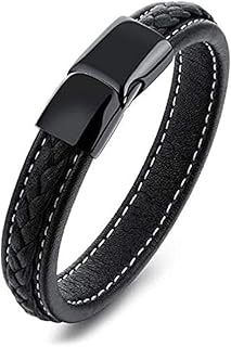 WOLF Men's Braided Leather Magnetic Clasp Bracelets Charm Bracelet Bangle Wristband 8.5", 21.5 cm, Leather