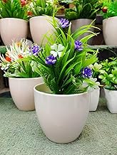 Artificial Potted Plant with Purple Flowers and White Blossoms, Decorative Faux Greenery in White Ceramic Pot