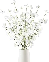 IPOPU 8PCS White Sweet Pea Flowers Artificial 39" Tall Fake Flowers Faux Silk Flowers Long Stem Artificial Flowers for Tall Vase Wedding Party Home Decoration(White)