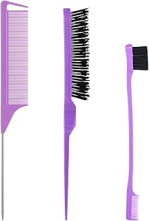 Styling Hair Brush Set, Bristle Hair Brush Tail Comb Edge Brush for Edge & Back Brushing, Purple Brush Set Rat Tail Combing Slicking Hair for Women Girls 3PCS
