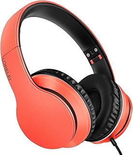 LORELEI X6 Over-Ear Headphones with Microphone, Lightweight Foldable & Portable Stereo Bass Headphones with 1.45M No-Tangle,Wired Headphones for Smartphone Tablet MP3 / 4 (Vitality Orange)