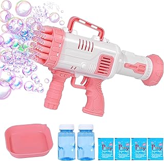 TOYHDAYO Bubble Machine Gun, 32 Holes with Lights, Bubble Solution, Bubble Maker for Kids, Boys, Gir