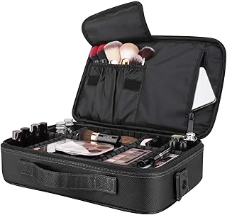 Professional Oxford Cosmetic Organizer with Adjustable Division | Makeup Bag Travel Train Case (Small (1 Zipper), Black)