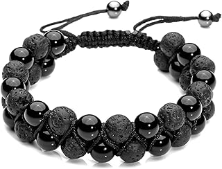 Top Plaza Men Women 8mm Lava Rock Stone Aromatherapy Essential Oil Diffuser Bracelet Braided Rope Natural Stone Yoga Beads Bracelets, 8 inch