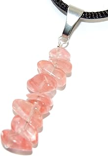 SteamPunkers USA Limited Edition - Miner's Horde - 30mm Chip Chunk Pendant Shaped Red Quartz, Pink - Black Cord – Natural Stone Crystal Gemstone Pendant Necklace Charm