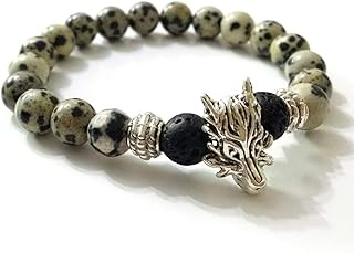 murtoo Mens Bead Leather Bracelet, Natural Bead, Steel and Leather Bracelet for Men Christmas Gift, Leather